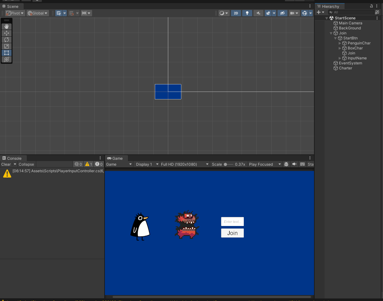 에셋을통해 불러온 Idle 이미지를 넣고 Animator를 적용 시킨후 저는 Join이라는 버튼과 함께 Main Scene으로 넘길 예정이므로 같이 넣었습니다.